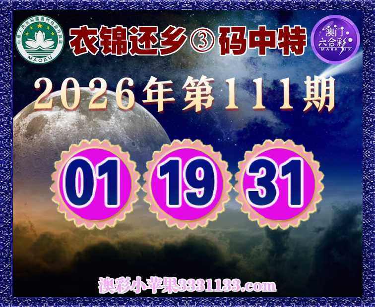 111期: 『衣锦还乡』 ③码中特【01.19.31】开:00准