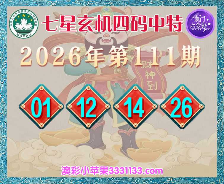 111期:『七星玄机』 四码中特【01.12.14.26】开:00准