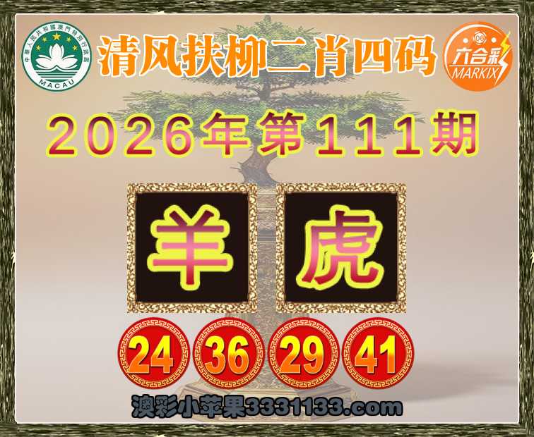 111期:【清风扶柳】 二肖四码【羊虎】【24.36.29.41】开:马01
