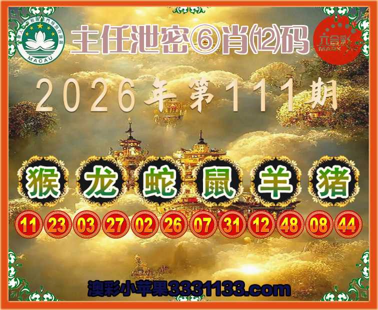 111期: 主任泄密 ⑥肖⑿码【猴龙蛇鼠羊猪】开:00准