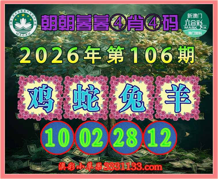 106期:《朝朝暮暮》 ④肖④码蛇兔羊】【10.02.28.12】开:鸡22