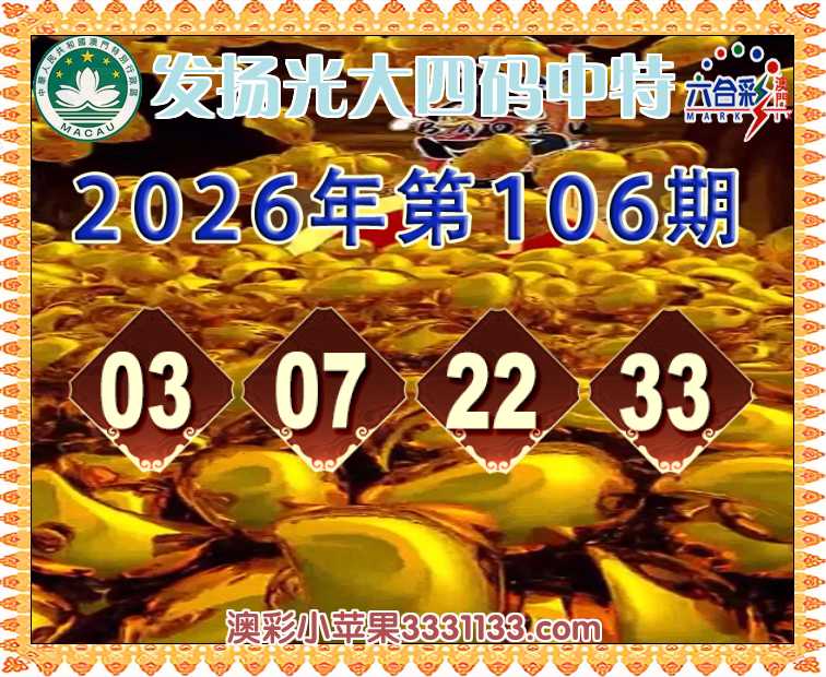 106期:《发扬光大》 四码中特【03.07.22.33】开:22