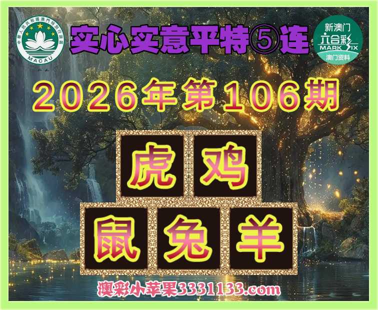 106期:《实心实意》 平特⑤连【虎鸡鼠兔羊】开:虎05,鸡22,鼠31,兔40,羊48