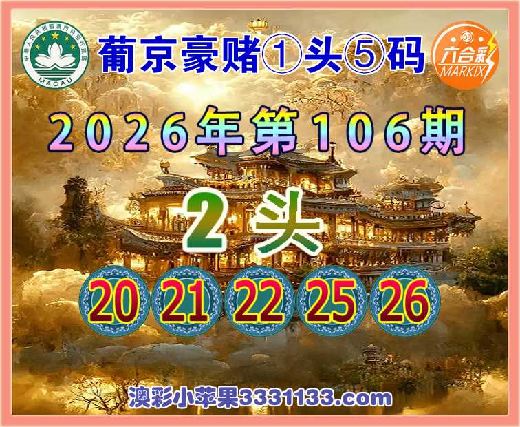 106期:〖葡京豪赌〗 ①头⑤码2头主:20.21.22.25.26】开:22