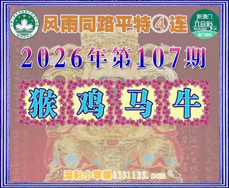 107期:『风雨同路』 平特④连【猴鸡马牛】开:猴35,鸡10,马49,牛06