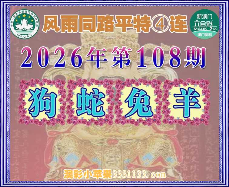 108期:『风雨同路』 平特④连【狗蛇兔羊】开:狗45,蛇26,兔40,羊48