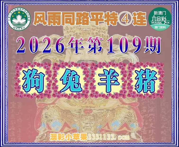 109期:『风雨同路』 平特④连【狗兔羊猪】开:00