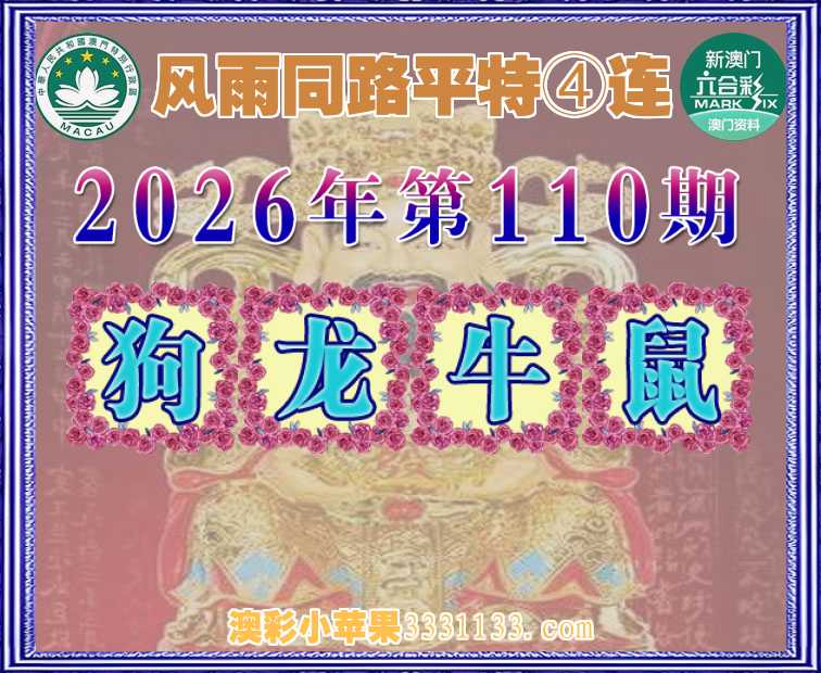 110期:『风雨同路』 平特④连【狗龙牛鼠】开:狗45,龙03,牛30,鼠43
