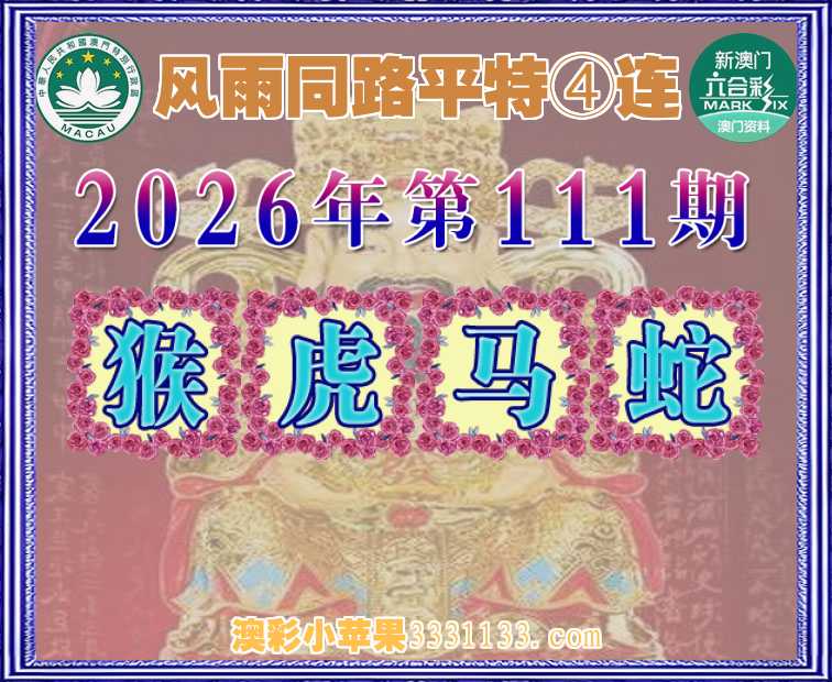 111期:『风雨同路』 平特④连【猴虎马蛇】开:猴23,虎41,马01,蛇38准上榜高手